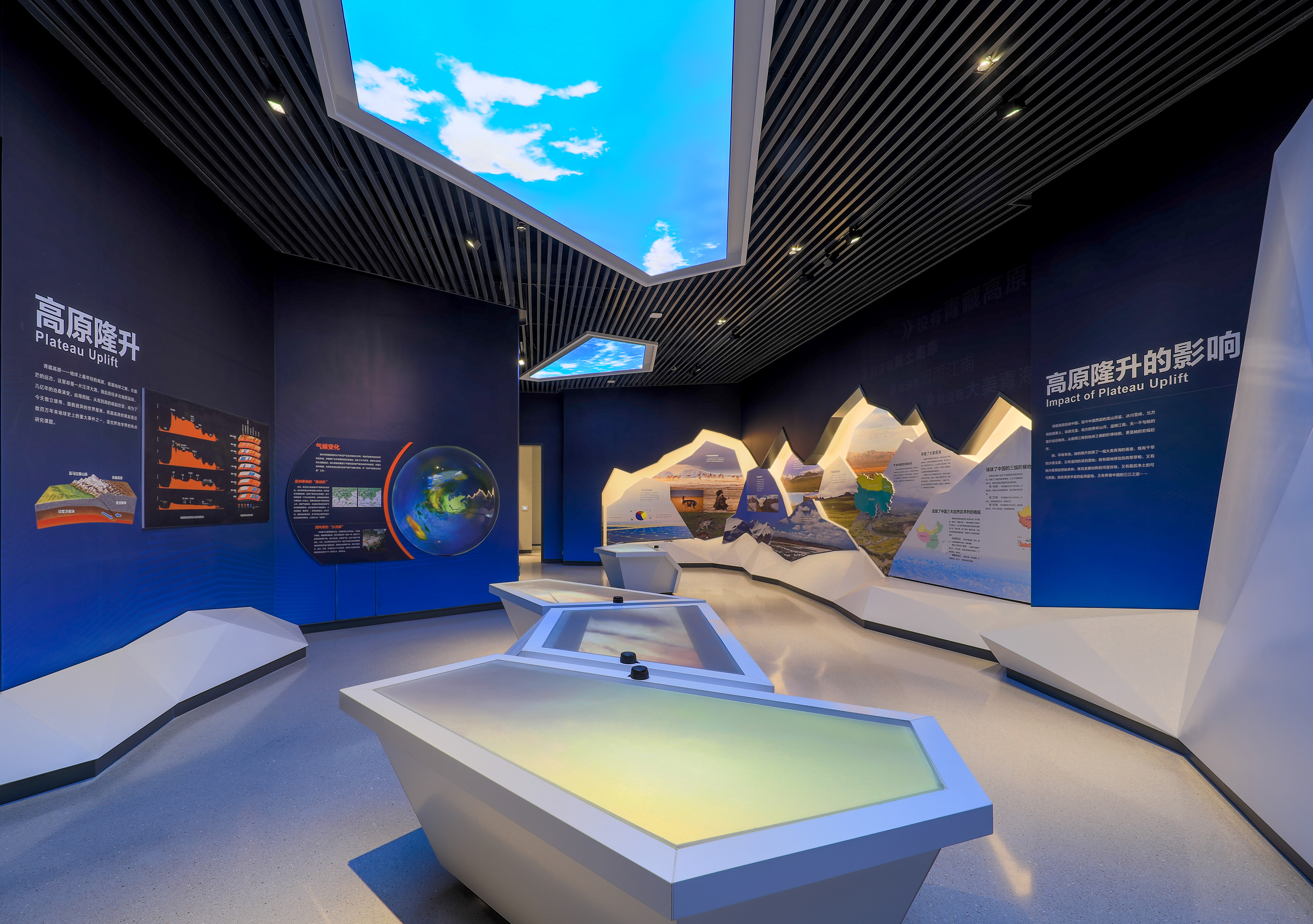 The main building of the museum has four floors, with a construction area of 7,500 square meters and an exhibition hall area of 5,747 square meters, which is divided into the preface hall, the earth science hall, the natural resources hall, the man and nature hall, the mineral crystal hall, and the course of trials and hardship hall. Focusing on the main line of “origin, traceability, resources, and origin”, the exhibition adopts digital display, all-round exhibition, immersive experience, interactive learning, real-time online and other methods to popularize the beginning of all things, explore the mysteries of the plateau, display the charm of resources, and protect ecological harmony, and effectively play the propaganda function of “one highland, one window, one platform”, that is, the “propaganda highland” of Xi Jinping's ecological civilization thought, the “display window”of popularizing natural resource knowledge, and the “display window” of promoting the great beauty of Qinghai,and love Qinghai, build Qinghai, and dedicate Qinghai to the “power platform”.